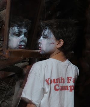 Every year in November the palm farm comes alive with the souls of dead people. We who gather welcome these souls with the "ofrenda" alter , candles and photographs. We paint our faces this evening to make calacas, the faces of grinning skeletons. "When the calacas dance, they take children by the hand," says Zarco Guerrero of Mesa, who celebrate this tradition each year. "they are not dancing like the Grim Reaper, who are meant to scare children" on Halloween.